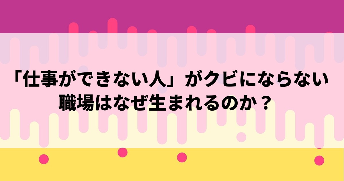 「仕事ができない人」がクビにならない職場はなぜ生まれるのか?