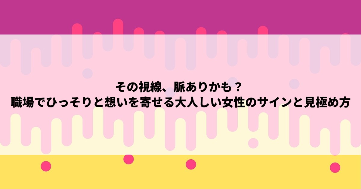 その視線、脈ありかも? 職場でひっそりと想いを寄せる大人しい女性のサインと見極め方
