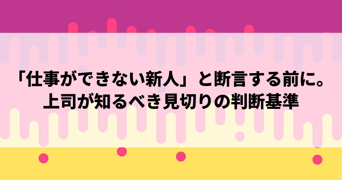 「仕事ができない新人」と断言する前に。上司が知るべき見切りの判断基準