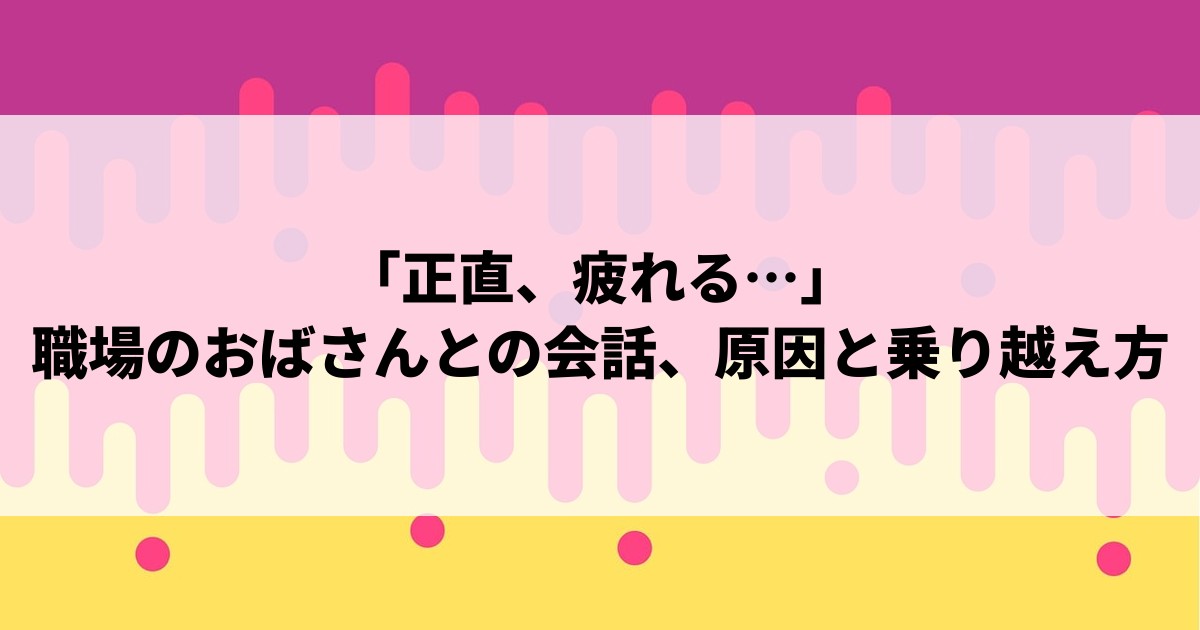 「正直、疲れる…」職場のおばさんとの会話、原因と乗り越え方
