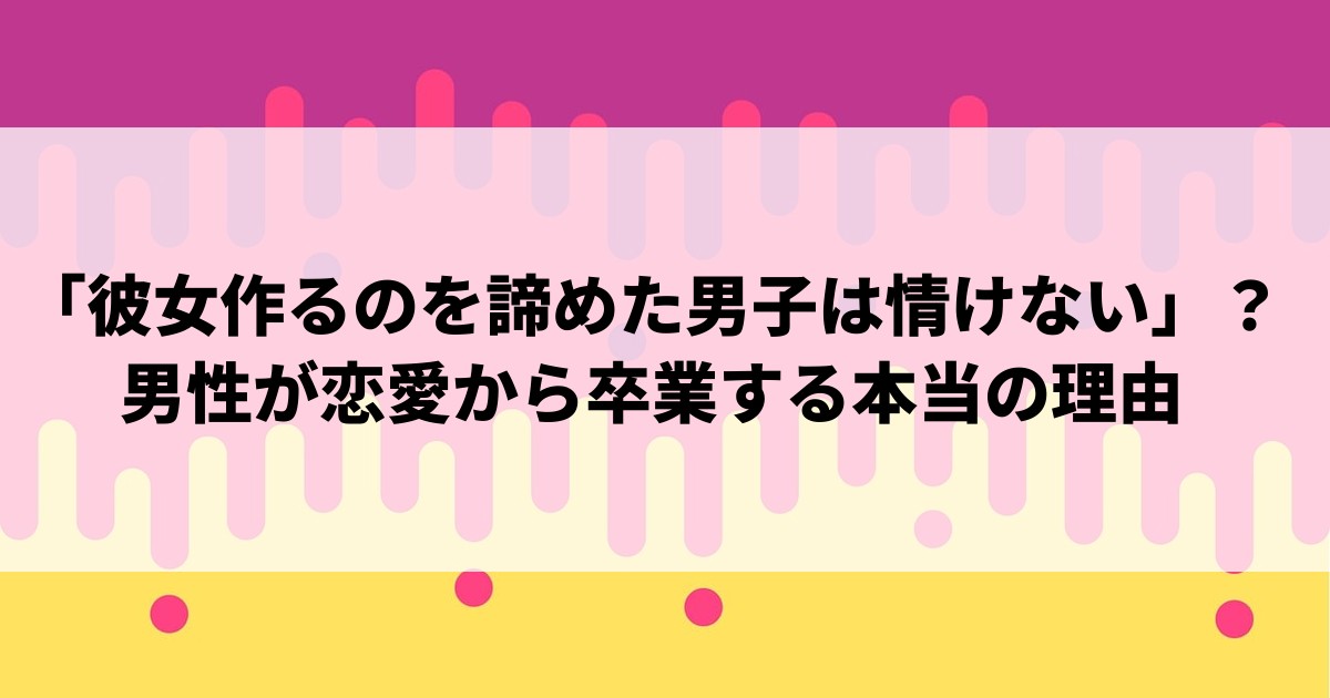 「彼女作るのを諦めた男子は情けない」?男性が恋愛から卒業する本当の理由