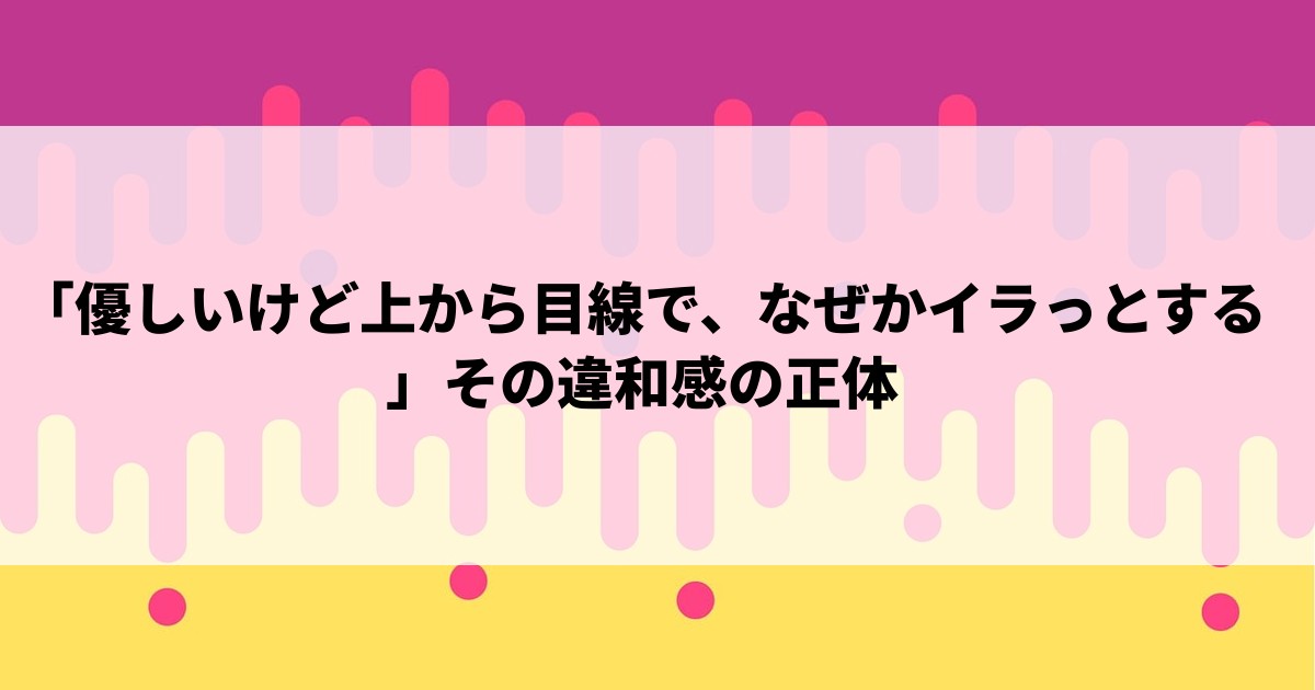 「優しいけど上から目線で、なぜかイラっとする」その違和感の正体